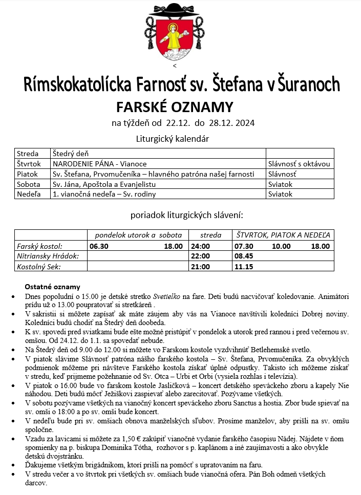 oznamy 1. vianočnánedeľa 2024 (30.12. 2024 - 05.1. 2025)